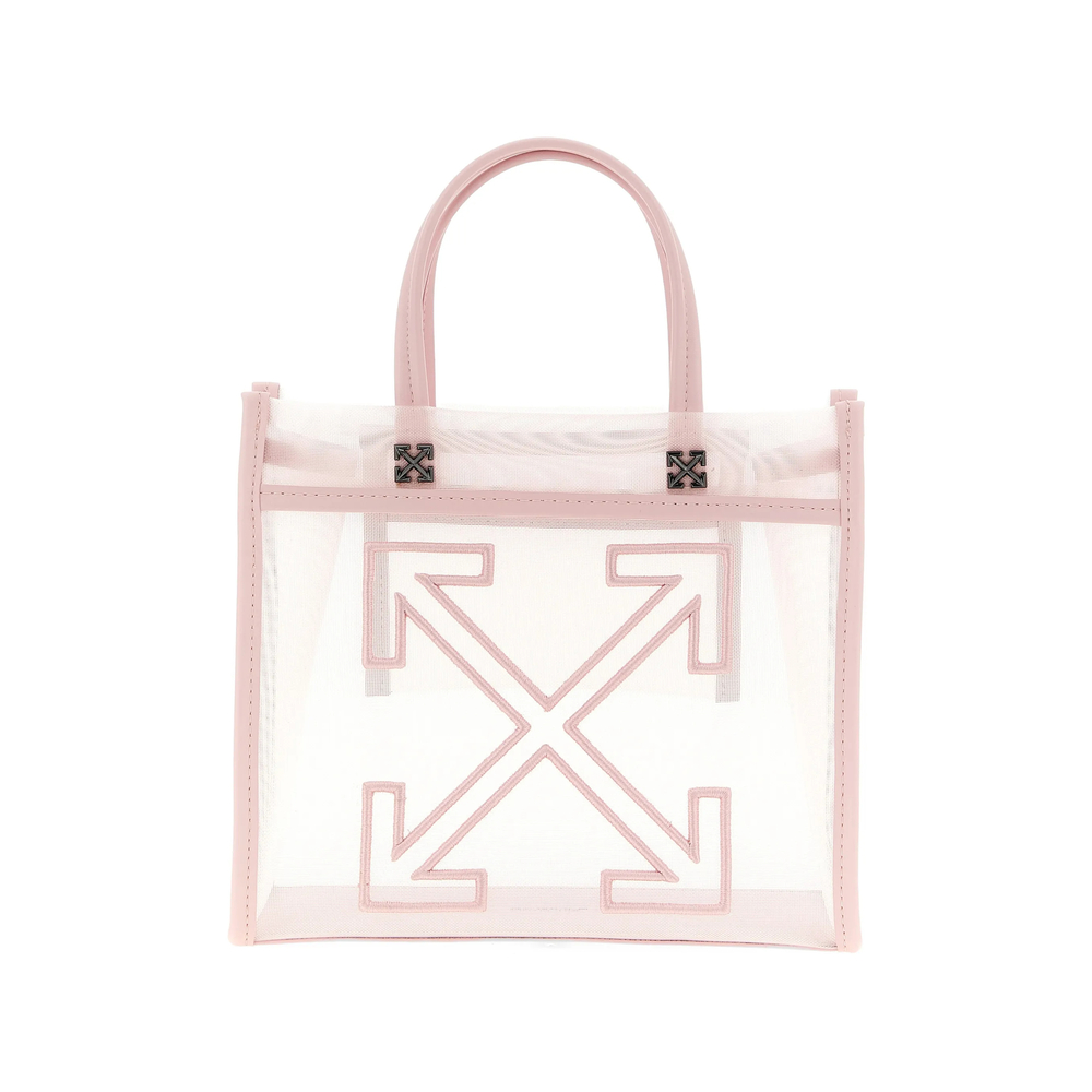 pink mesh texture signature Arrow-motif embroidery two top-handles internal slip-pocket open-top design