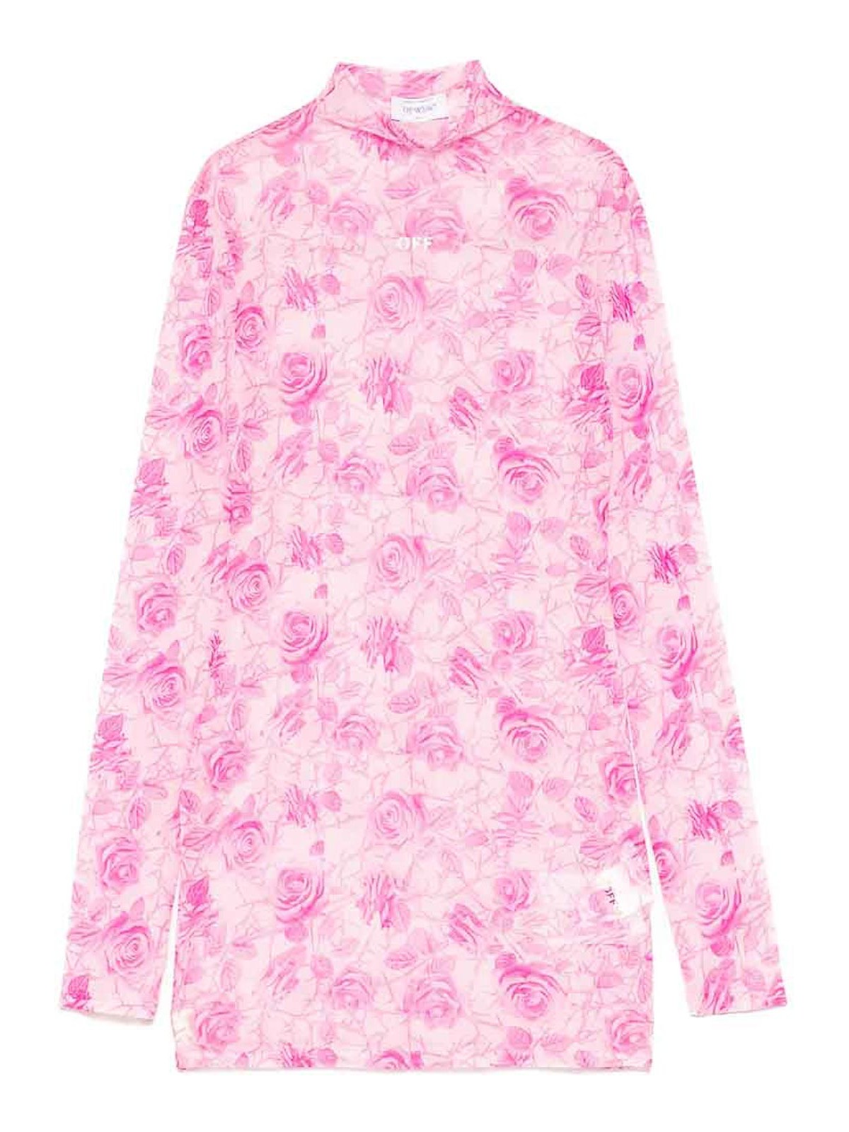 Logo rose rose imprimé sur la poitrine, col montant à imprimé floral intégral