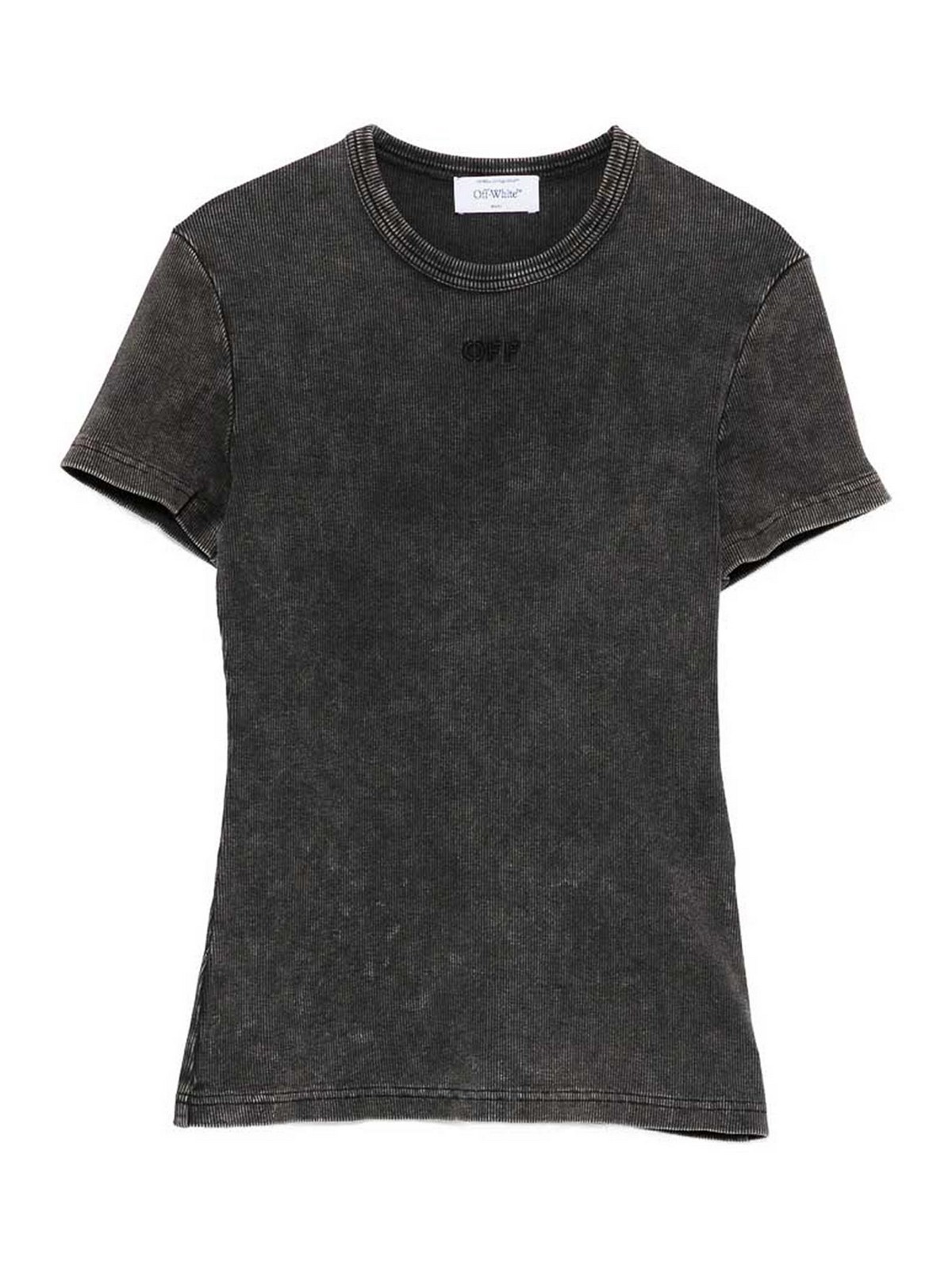 Logo brodé à manches courtes et col rond à texture côtelée gris foncé