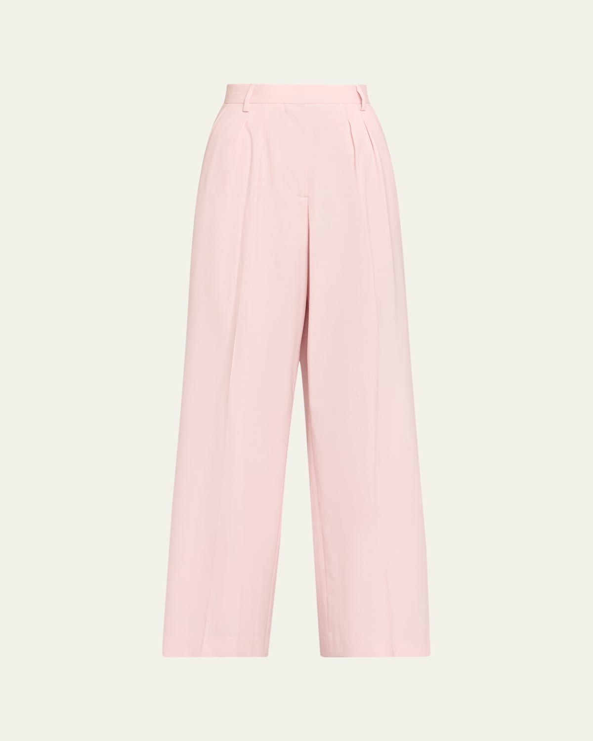 Crafted in Italian fresco wool, the "Elia" pants by Officine Generale feature a loose fit for comfort without compromising style. High rise Doublepleated front Fourpocket style Wide legs Full length Hook/zip fly; belt loops Cotton Dry clean only Made in Portugal
