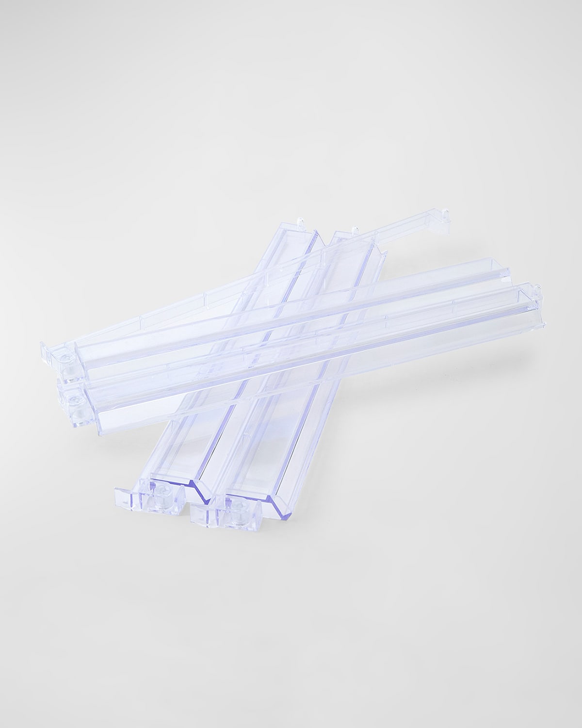 Elevate your next Mahjong session with these sleek American Mahjong racks and pushers! Made from highquality clear acrylic, these durable accessories are designed to enhance your gameplay and elevate your style. Dominate the table with ease and add a touch of sophistication to your tile game. Each set includes four racks with attached pushers Crafted of acrylic Approx. 18.5"L x 4.75"W each Wipe clean Set of four Imported