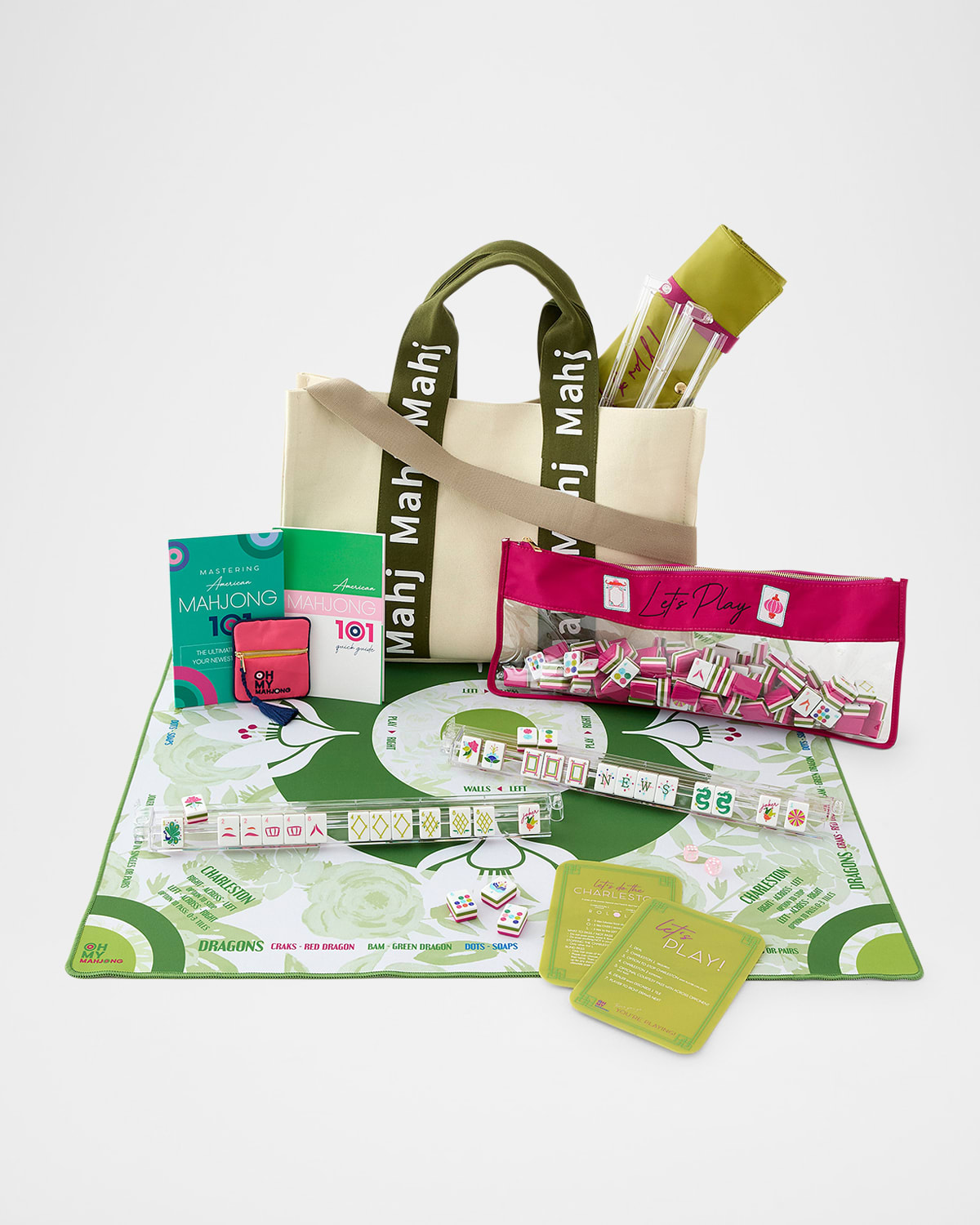 Introducing the Dandy Ultimate Starter Kit your gateway to mahjong elegance! This bundle contains all the essentials (plus a little more) to launch your tiletapping adventure. It's like giving your mahjong experience the VIP treatment. Prepare to take your game to new heights with this premium set! Set Includes: 160 acrylic tiles, MahjItAll 2.0 Bag, Let's Play Tile Bag, Mahjong Coin amp; Dice Bag, Let's Rack amp; Roll Bag, Acrylic Rack amp; Pusher Set, Mahjong tile shufflers, Olive Rose Mahjong