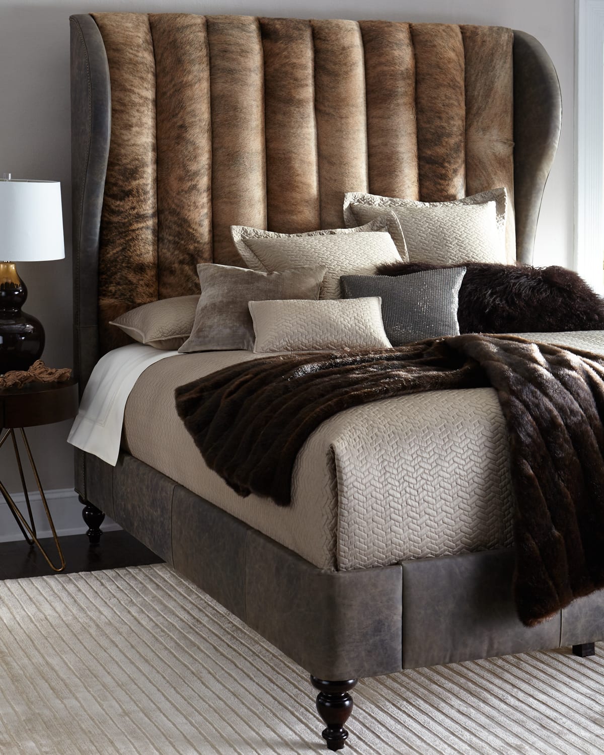 Jessie King Channel-Tufted Hairhide Bed