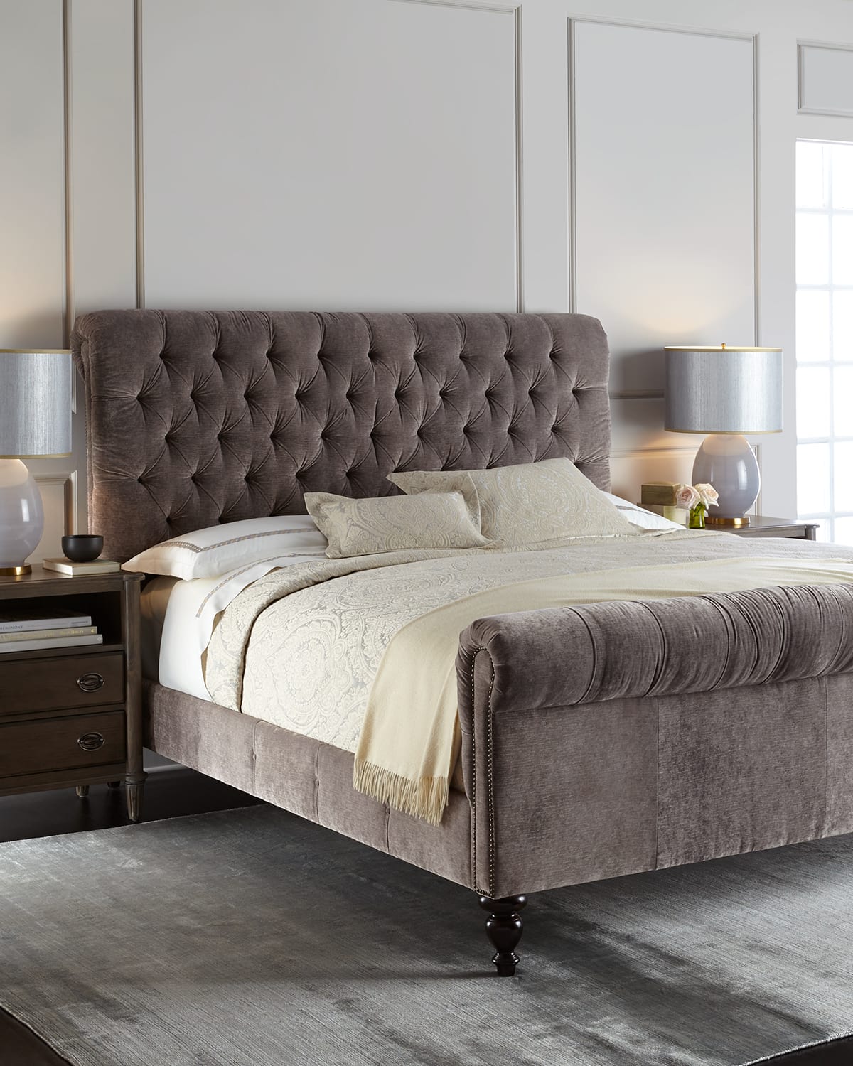 EXCLUSIVELY AT NEIMAN MARCUS Maple frame with coffeebean finish. Cotton/acrylic/nylon upholstery. Assembly required. 81"W x 101"L x 64"T. Made in the USA. Boxed weight, approximately 160 lbs.