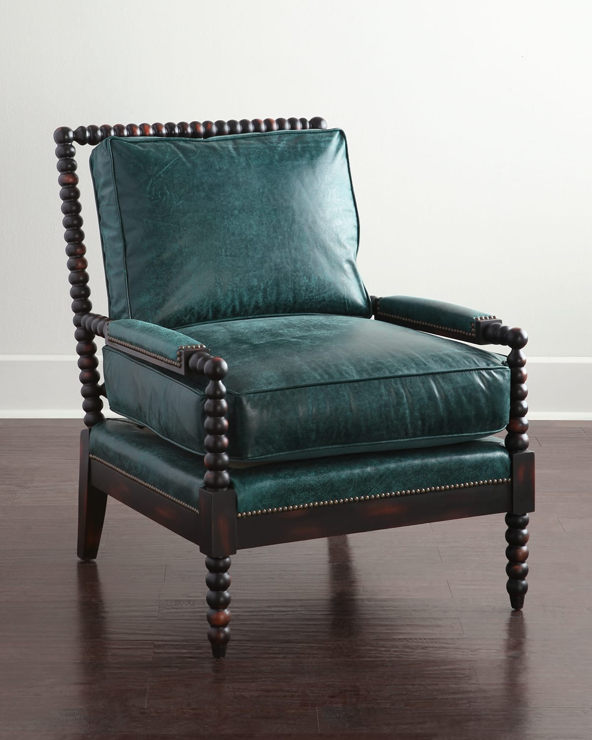 EXCLUSIVELY AT NEIMAN MARCUS Handcrafted bobbin chair. Maple frame. Pullup leather and polyester upholstery. 28.5"W x 28.5"D x 31.5"T; seat, 22"W x 22"D x 21"T. Made in the USA. Boxed weight, approximately 55 lbs.