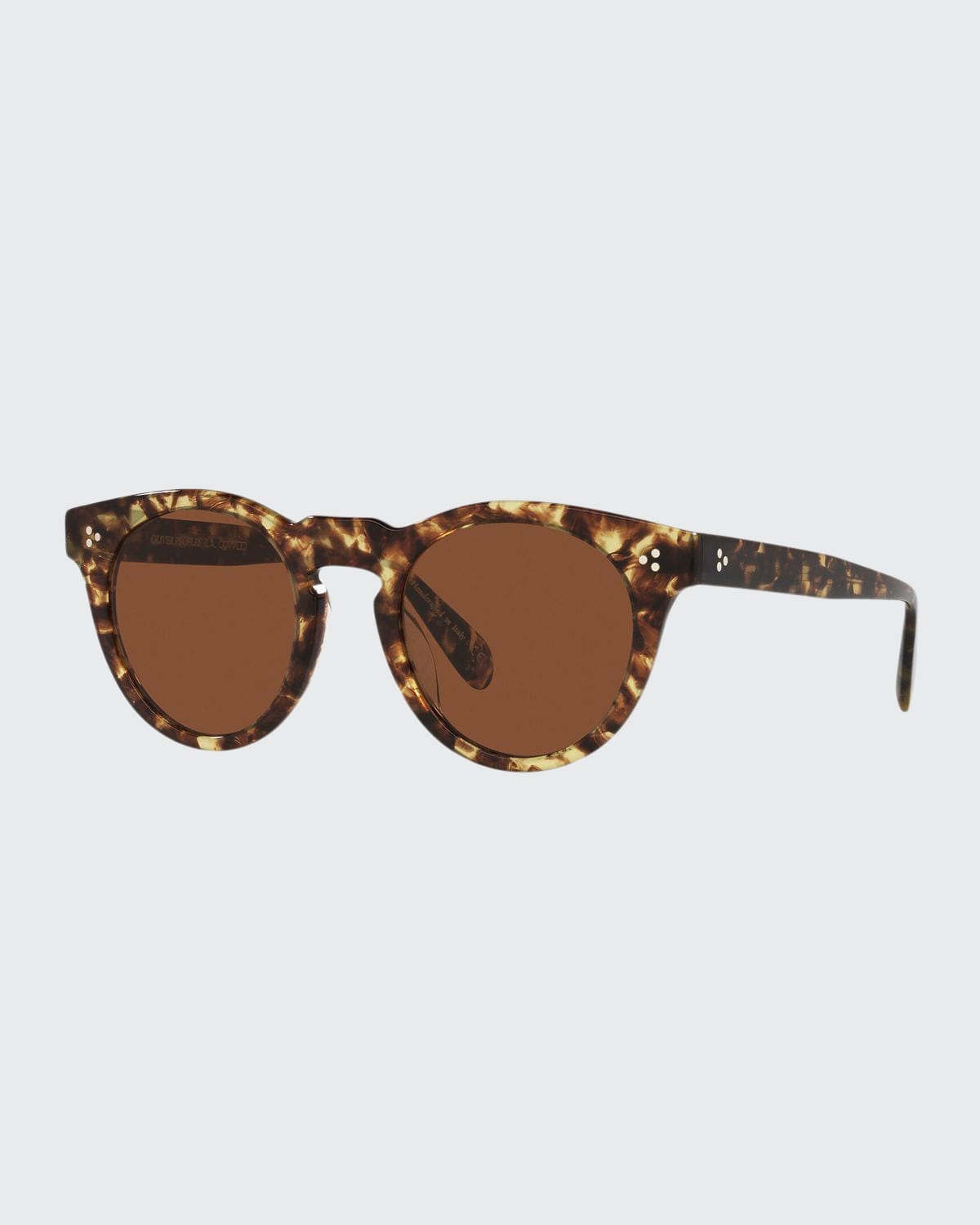 The Lewen is a unique sunglass with a distinct high bridge and end piece. This vintage inspired shape is updated with a bold front view and thin top view acetate build, resulting in a statement making look. Oliver Peoples "Lewen" sunglasses in acetate. Lens/bridge/temple (in mm): 4922145. Round frames with keyhole bridge. 100% UVA/UVB protection. Made in Italy.