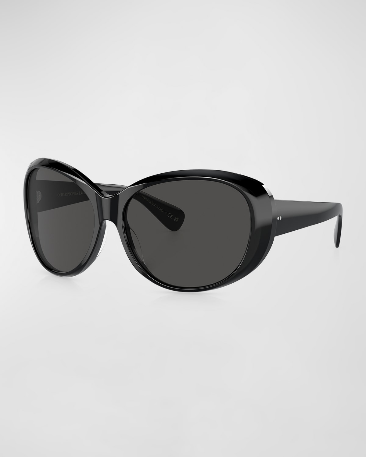 Oliver Peoples "Maridan" oversized round sunglasses in acetate and plastic Lens/bridge/temple (in mm): 6215135 Saddle nose bridge Thin, tapered arms Wipe clean 100% UVA/UVB protection Made in Italy