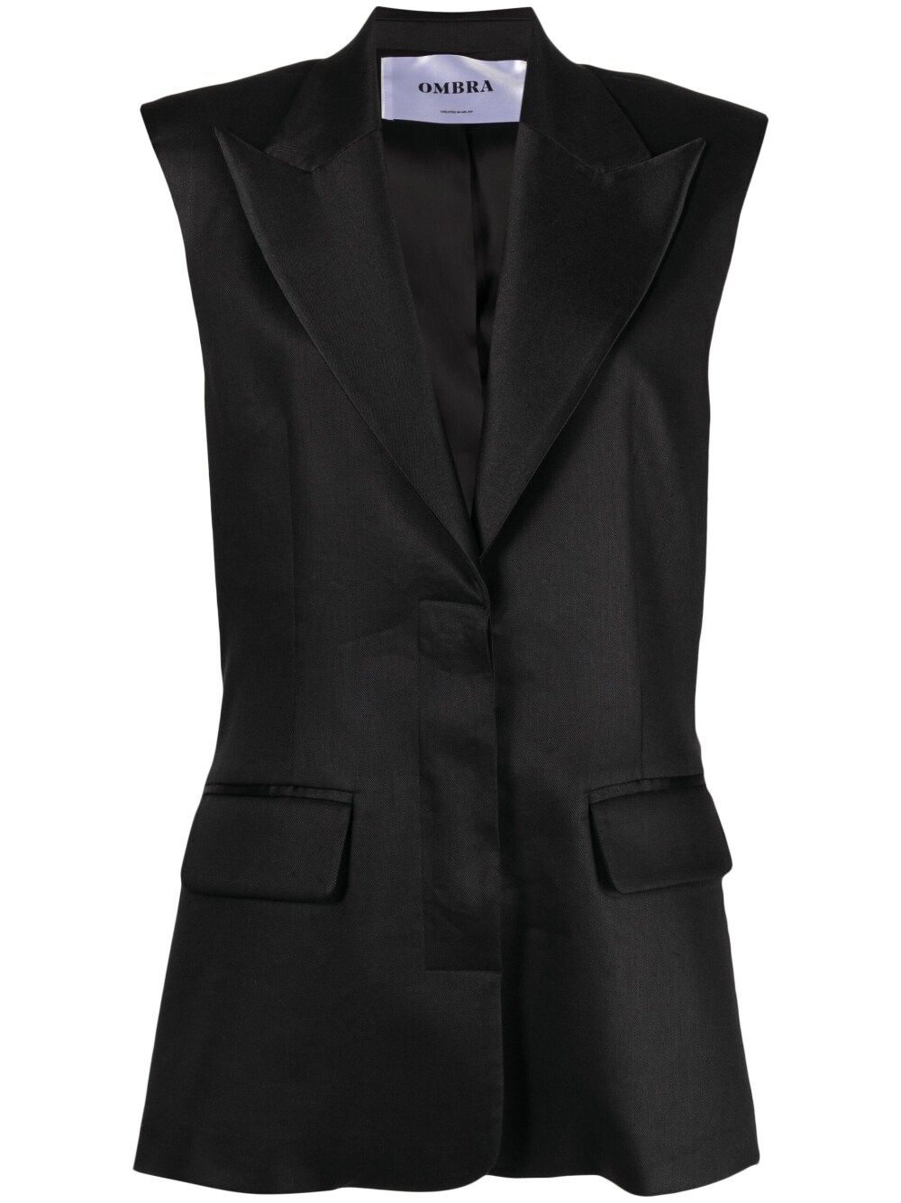 black peak lapels V-neck concealed front button fastening sleeveless two front flap pockets