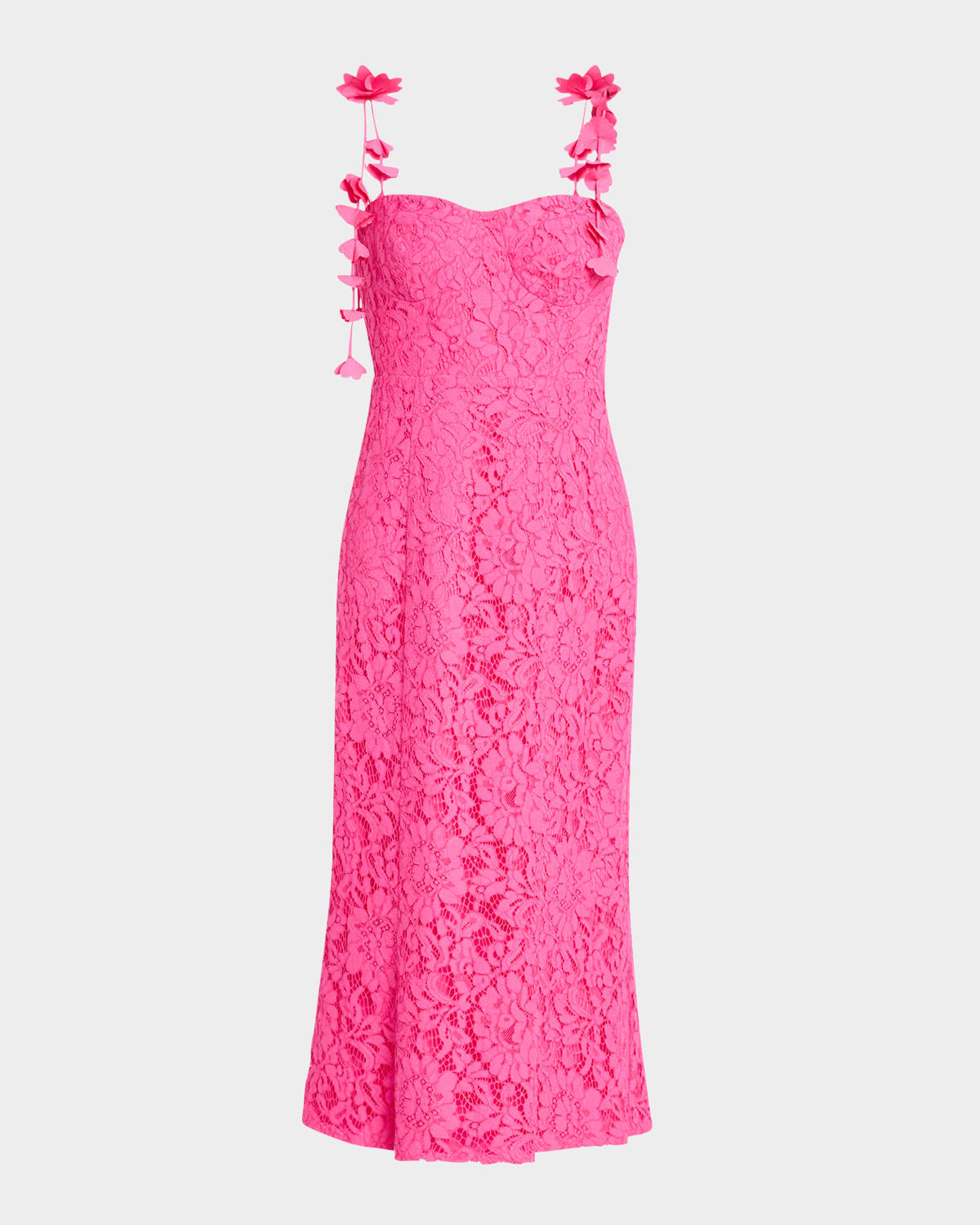 One33 Social midi dress in lace with floral appliquéembellished straps Approx. 42.5"L from shoulders to hem Sweetheart neckline Sleeveless Hem falls below the knee Trumpet silhouette Polyester Dry clean Imported