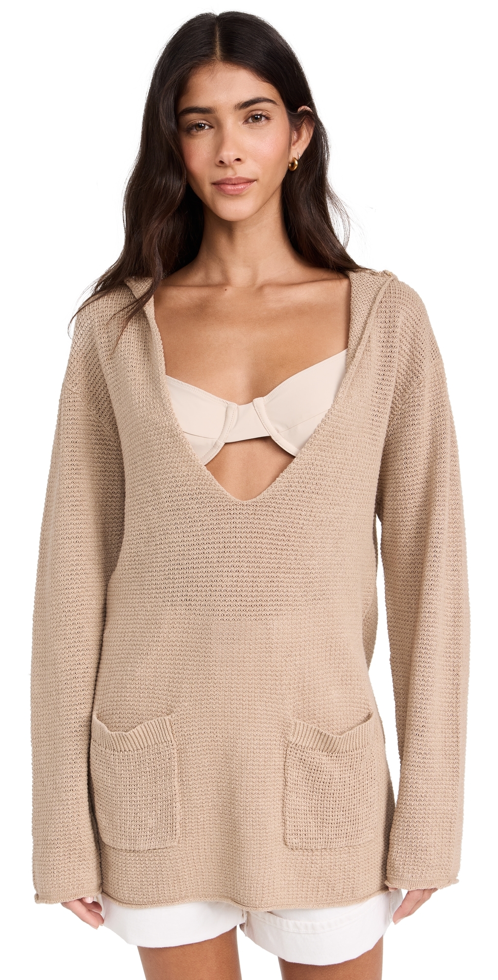 Fabric: Mid-weight loose knit. Hooded neckline. Scoop neck. Patch front pockets. Shell: 100% linen. Hand wash. Imported, China. Measurements: Measurements from size S Length: 29.25in / 74.0cm, from shoulder