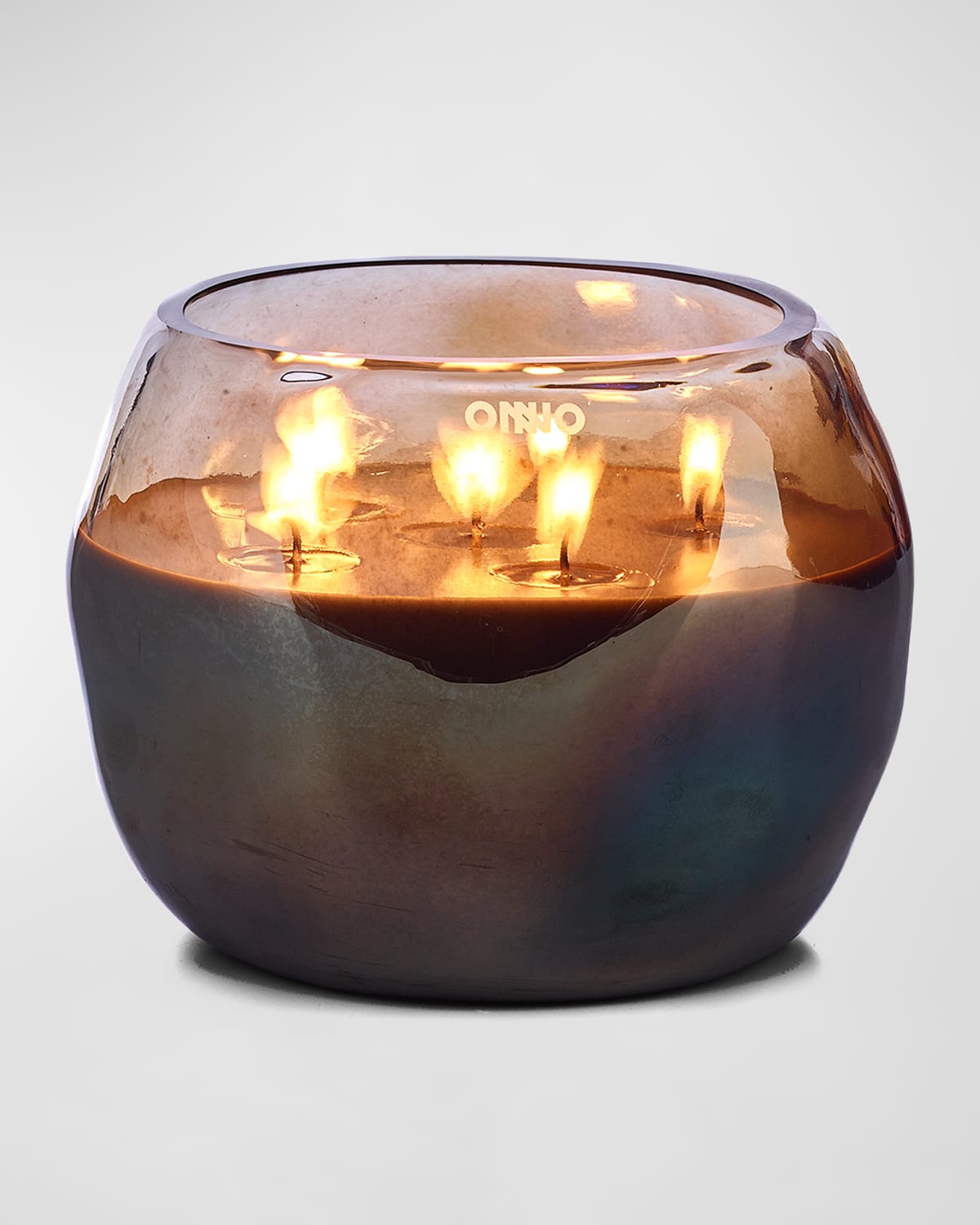 We invite you to discover our world of unique scented candles and diffusers. Fragrance Notes: Fresh bergamot, Citrus, Green tea Amazing mouthblown and handcut or handshaped glass by real qualified craftsmen. A piece of art in each interior. Our exclusive candles are carefully packed into luxury black gift boxes to indulge yourself in or as a gift for your dearest. All perfumes are created by our designer Ilse Vandeputte, who has an inborn passion for scents. With over 25 years of experience in developing perfumes, she is a true "nose" who uses only the finest highquality raw materials for which ONNO Collection is praised worldwide. Each candle drawing is born from an exceptional beautiful nature creation. Often basic yet so precious. ONNO Collection candles are highquality luxury candles made by hand in Belgium by qualified craftsmen. We use special pure mineral wax and fine Egyptian cotton wicks. Ilse Vandeputte:" A modern yet classical royal shape that is based on the real life we treasure so much. It starts, goes up, just all the way up to end in an endless circle. This series comes in a Royal Blue color. The shades of blue, which are created during burning, reflect the magical northern light. A truly warm and exceptional light." Burn Time: 65 hours 49.38 oz. /