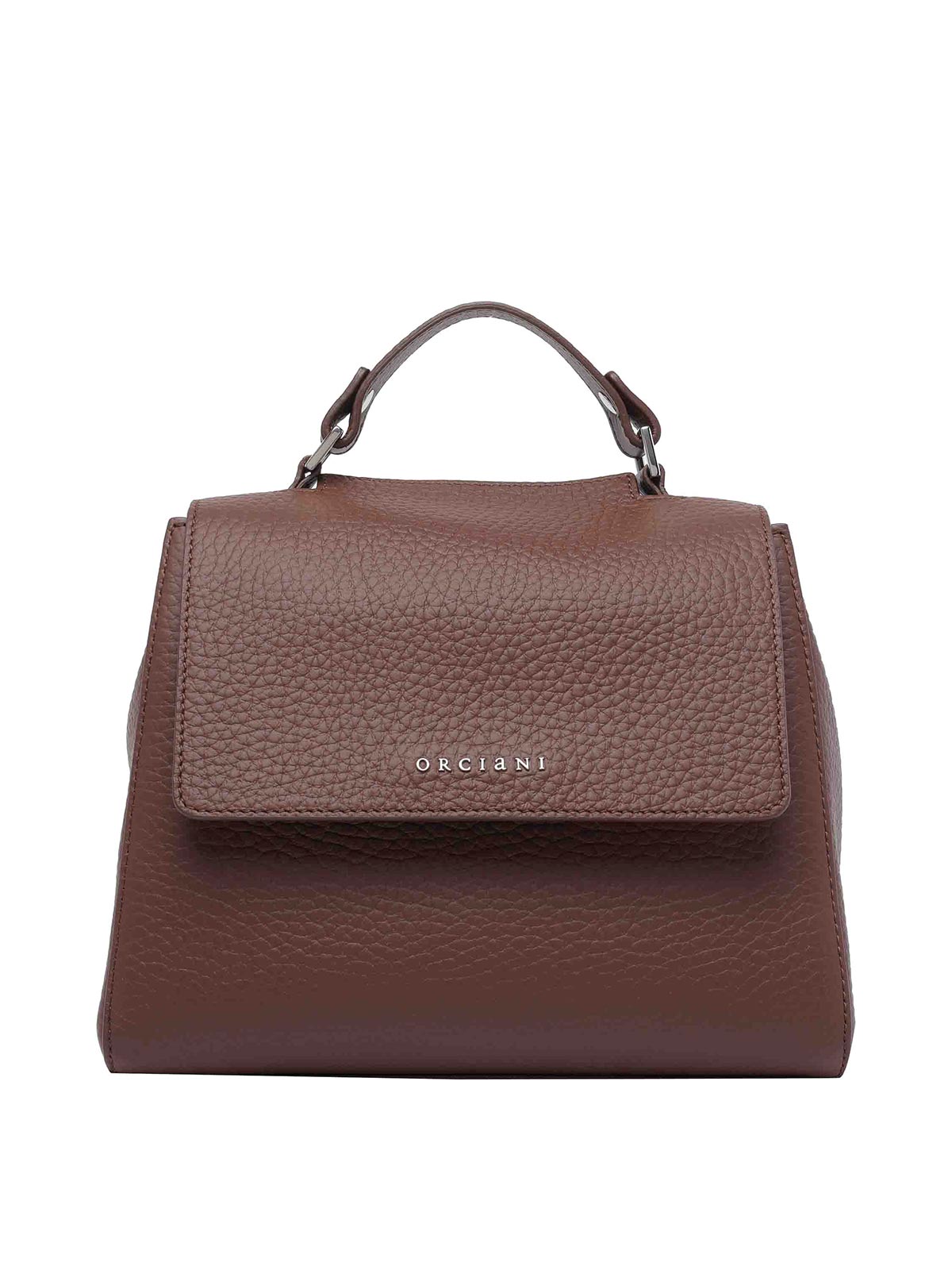 Sac à main Orciani Caffe' Soft Sveva, poche intérieure magnétique zippée et ouverte, bandoulière adaptable et amovible, mini-logo frontal