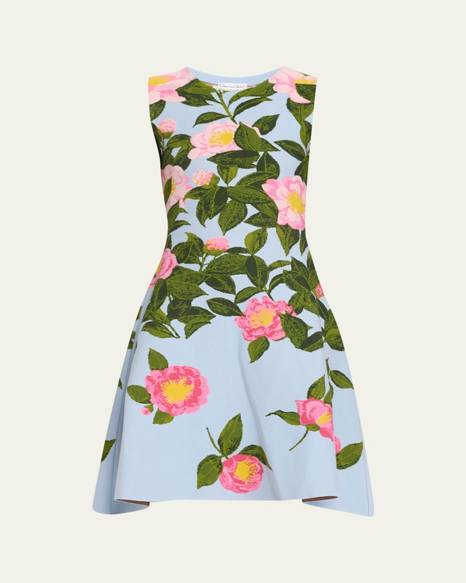 Oscar de la Renta dress in Camellia jacquard knit Round neckline Sleeveless Fitandflare silhouette Knee length Hidden closure Viscose/polyester/nylon/polyamide Dry clean Made in Italy