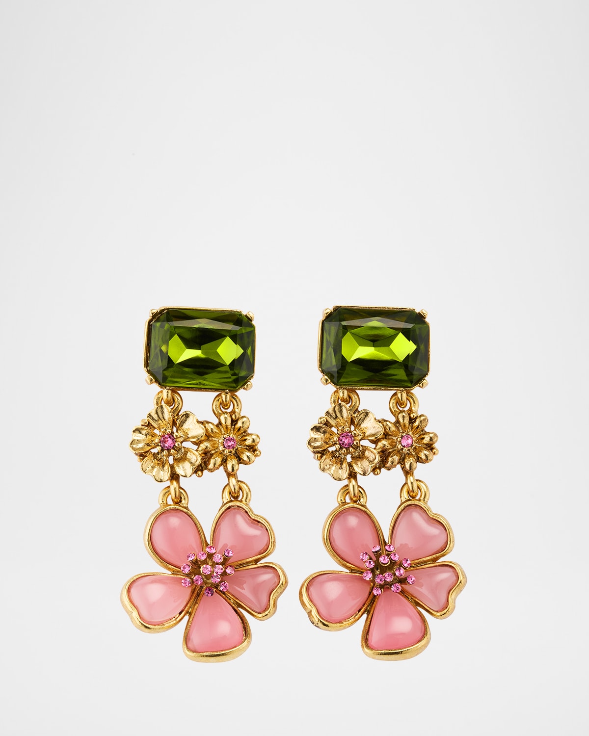 Oscar de la Renta drop earrings Goldtone pewter and steel Glass and resin For pierced ears Wipe clean Made in USA