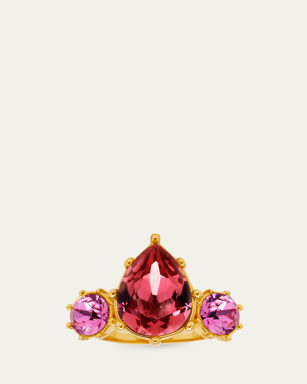 Arranged in prong settings, Oscar de la Renta uses colorful jewels for this threestone ring. 24karat goldplated brass Glass rhinestones Made in Italy