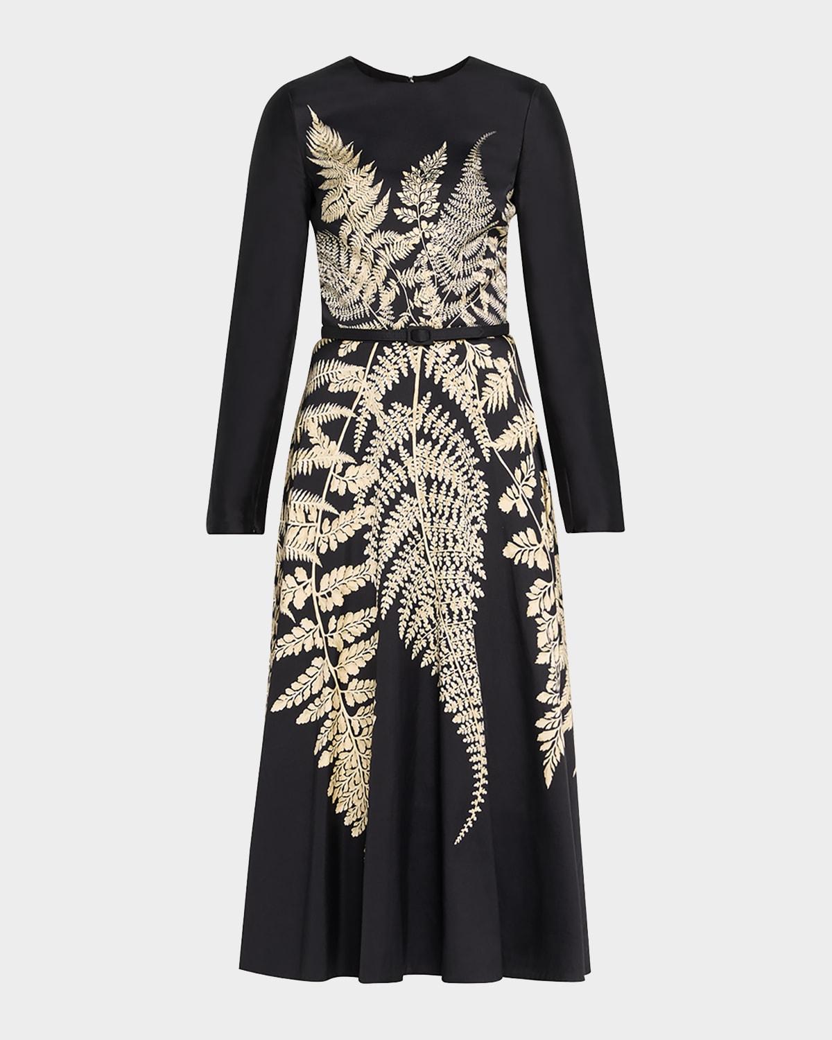 Fern-Print Long-Sleeve Midi Dress