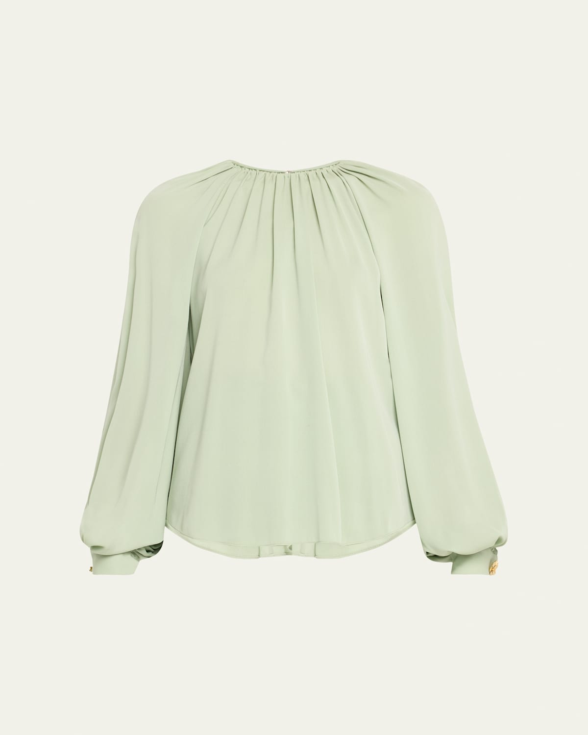 Jewel-Neck Long-Sleeve Silk Georgette Blouse