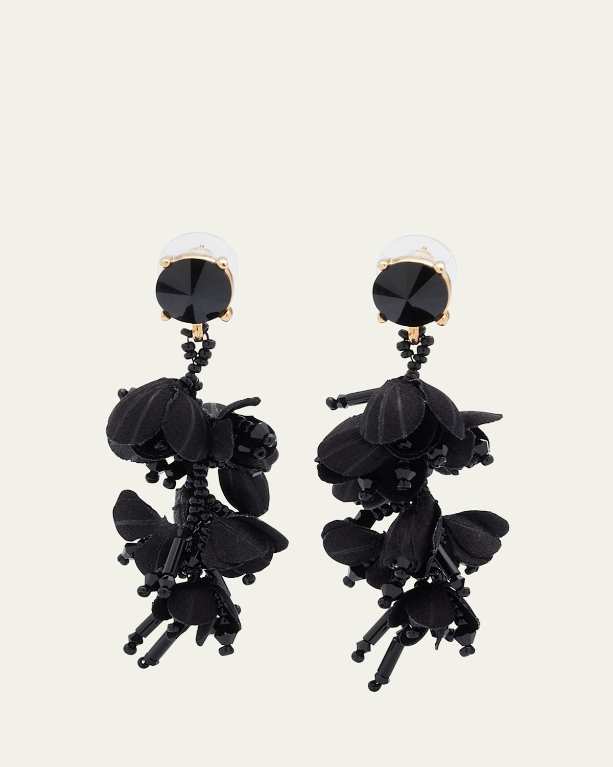 Oscar de la Renta earrings Brass hardware Glass and plastic Silk petals Nylon thread Clipon backs Spot clean Made in USA from imported materials