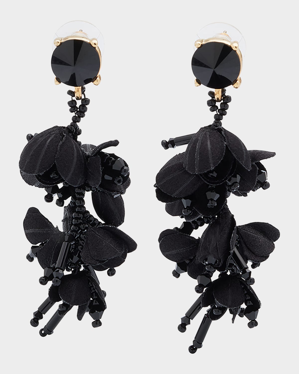 Oscar de la Renta earrings Brass hardware Glass and plastic Silk petals Nylon thread Clipon backs Spot clean Made in USA from imported materials