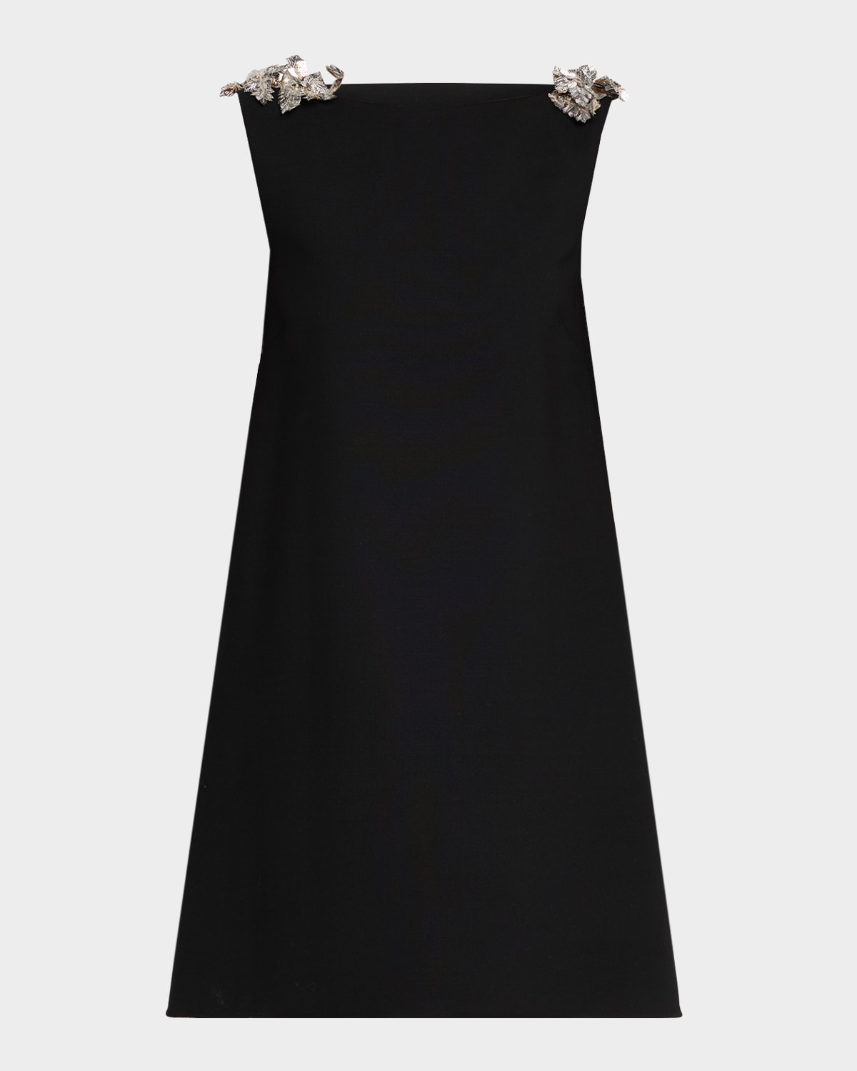 Oscar de la Renta doubleface wool dress featuring vine embellished back High neckline; low scoop back Sleeveless Shift silhouette Mini length Slipover style Virgin wool/elastane/nylon/polyamide Dry clean Made in Italy