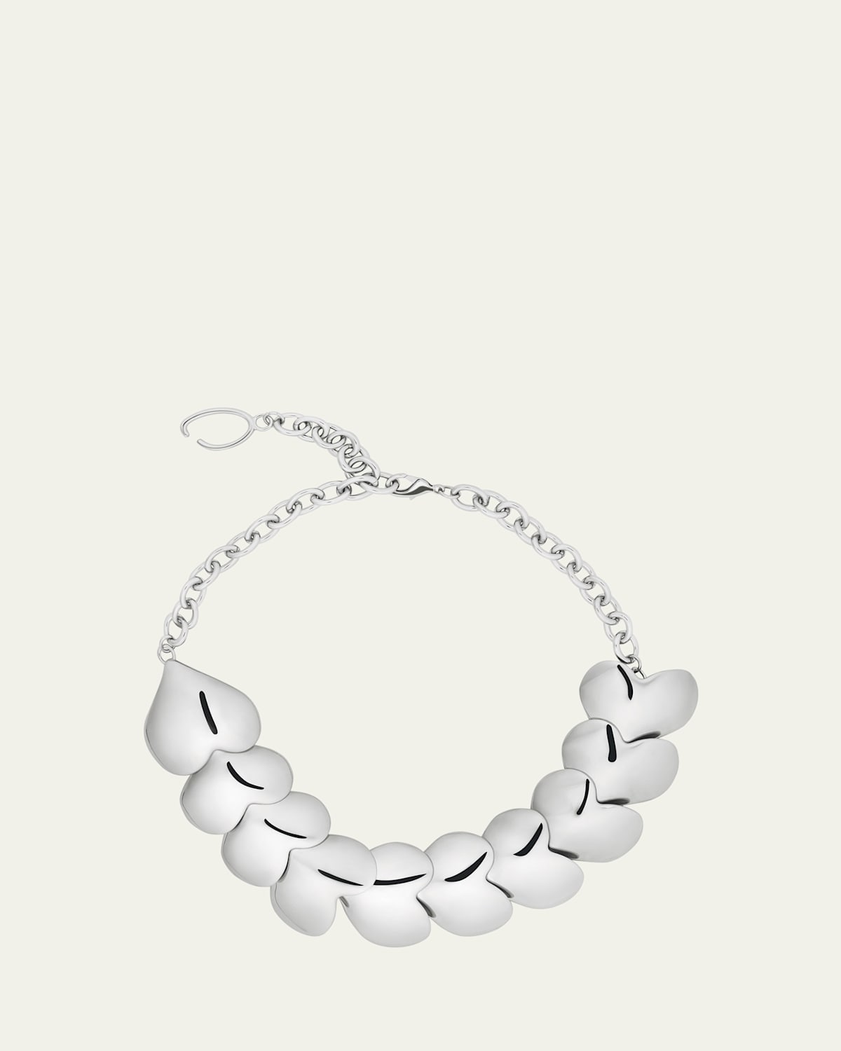 Large and lovely, this Oscar de la Renta necklace is designed with ten overlapping smooth domed hearts. Approx. 18" length (46cm) Silvertone brass Adjustable length Lobster clasp Made in Italy