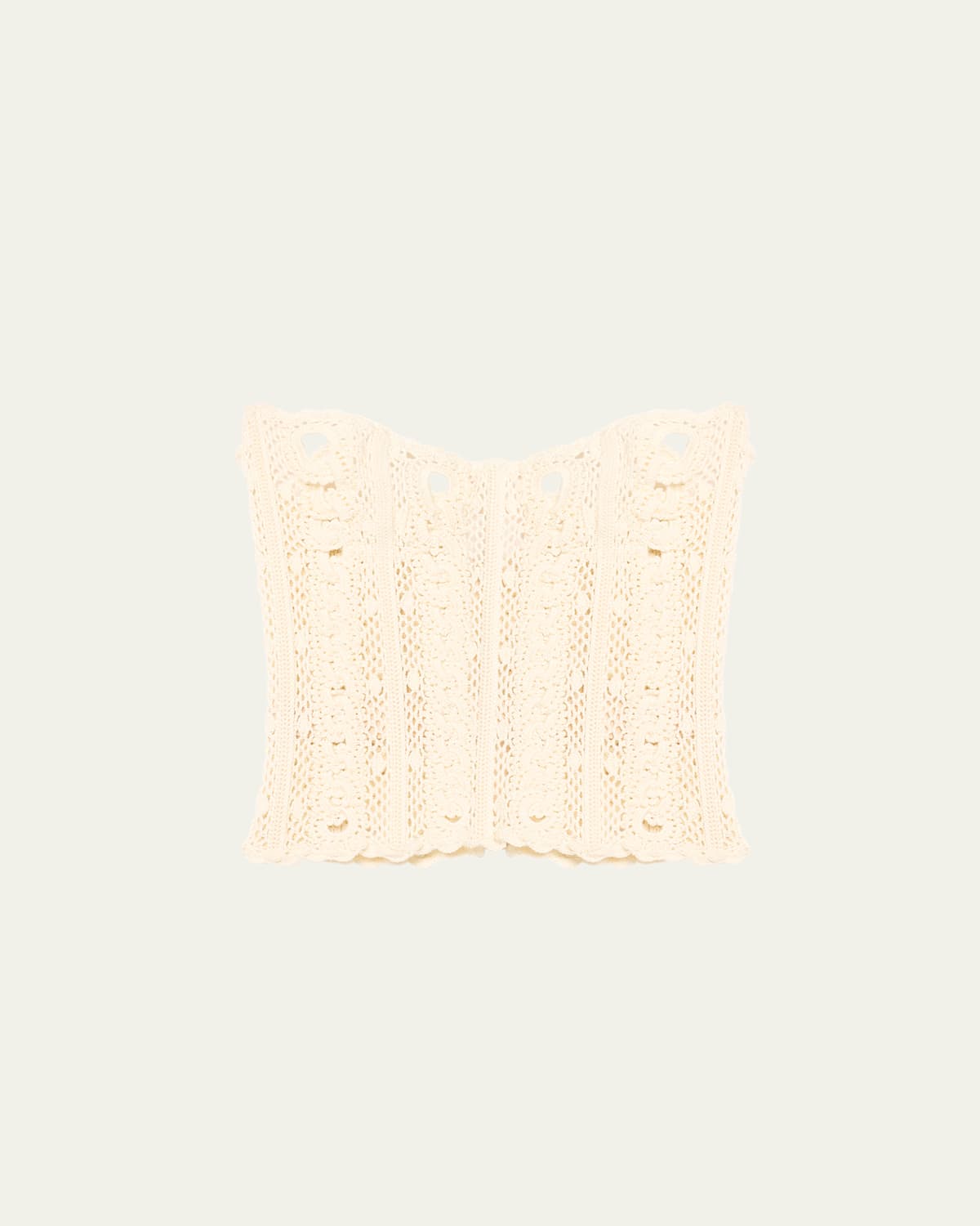 Oscar de la Renta strapless knit bustier top features a chain link detailing Sweetheart neckline Sleeveless Hip length Fitted Back zip closure Cotton Made in USA