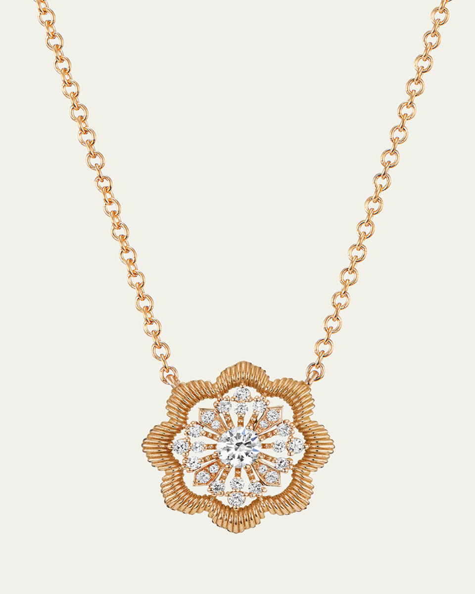 Lace Flower 18K Recycled Yellow Gold and Lab Grown Diamond Large Pendant Necklace