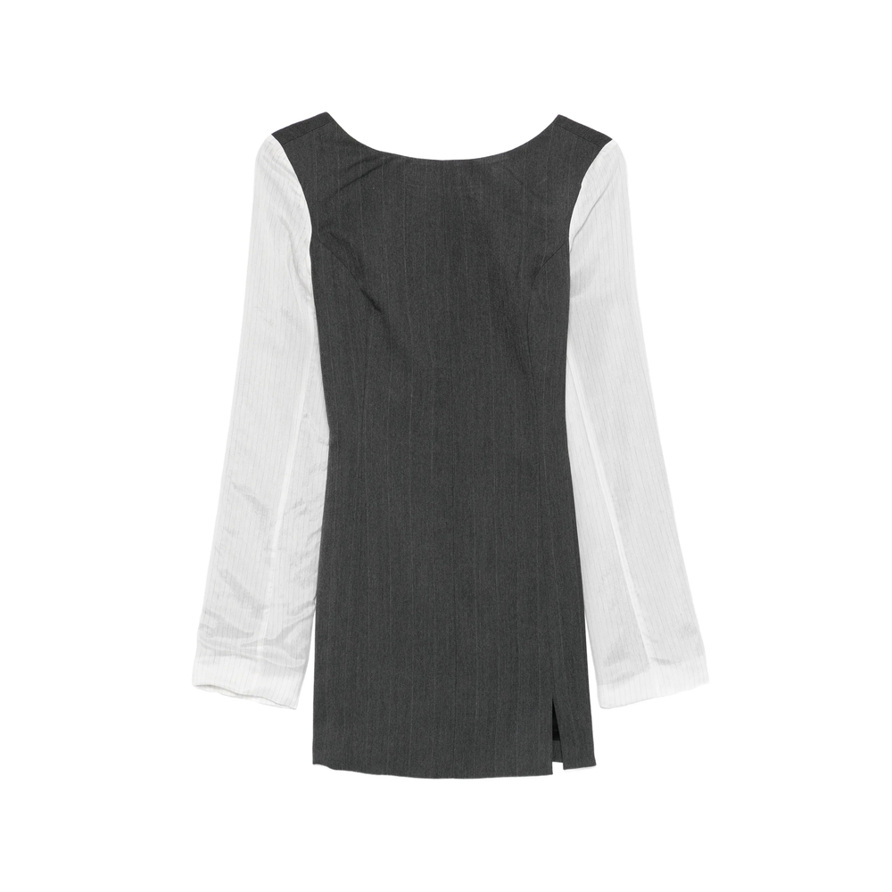 grey long sleeves tailored design pinstripe patterned sleeves mini length side slit