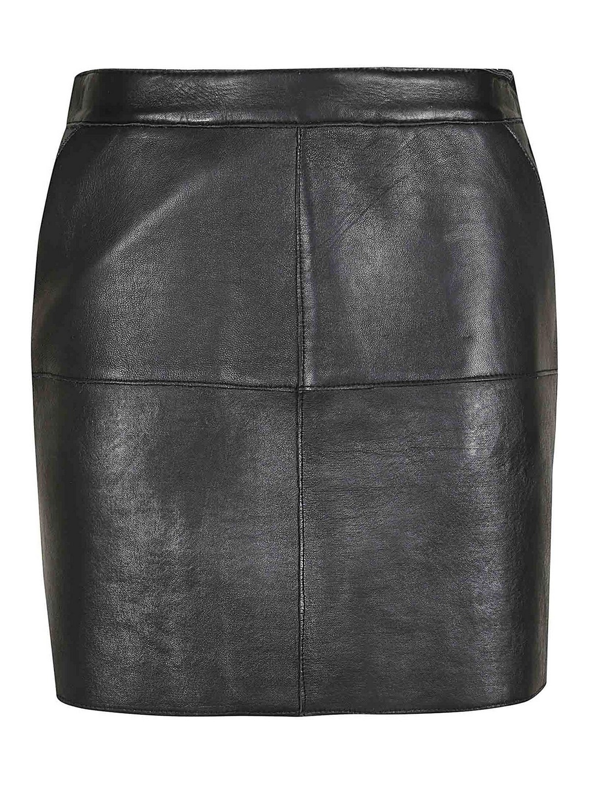 Jupe double en cuir avec poches obliques et fermeture zippée à l'arrière