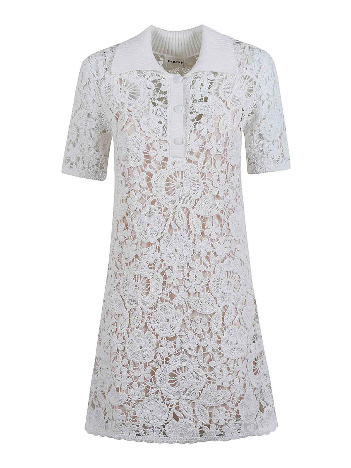 Robe en dentelle macram Col polo en macram avec trois boutons ouverts et miroir à pierres ouvertes Undernovate en crêpe de Chine couleur viande