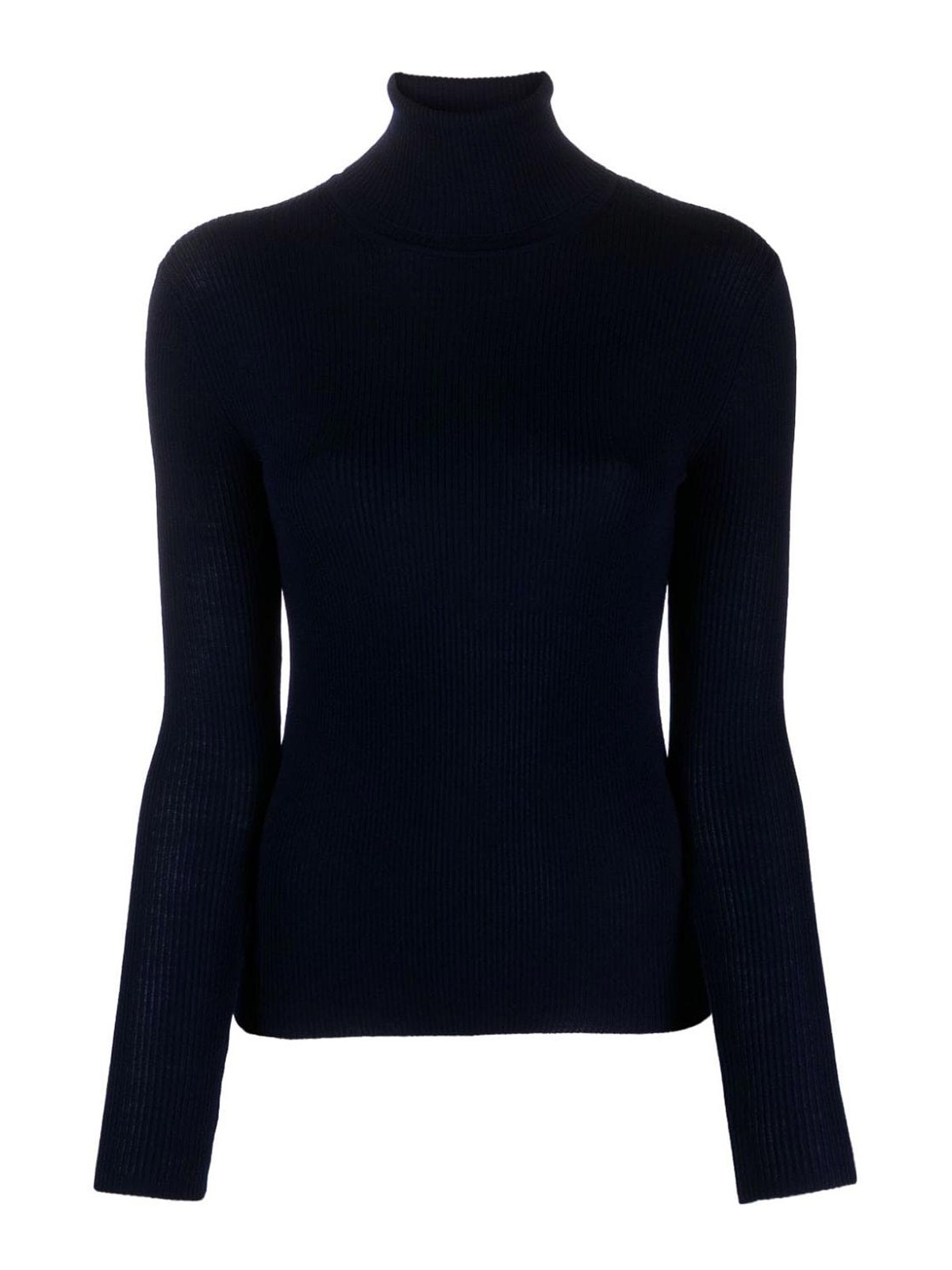 Col roulé en tricot côtelé bleu marine, manches longues, ourlet droit