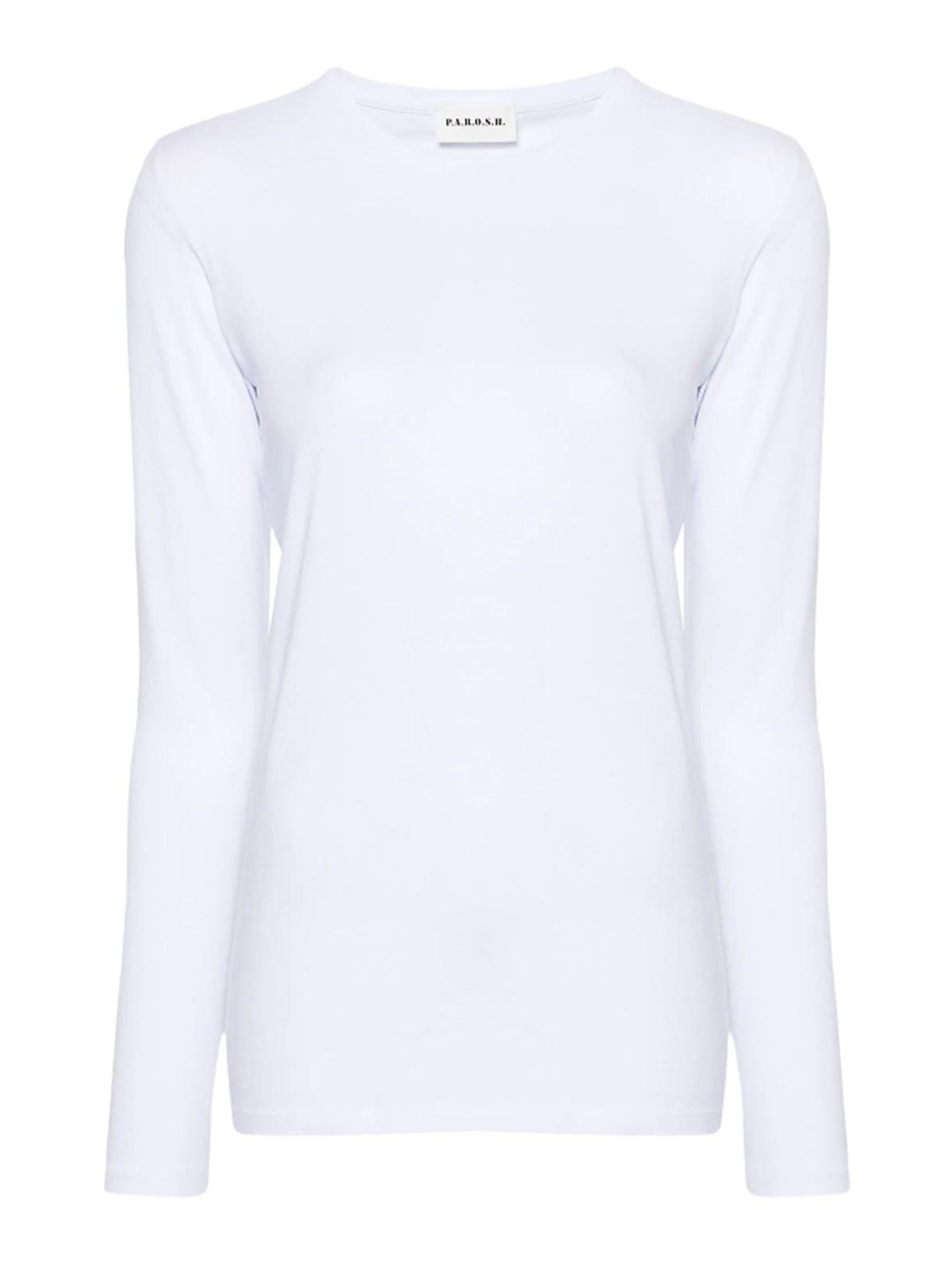 Col rond léger en mélange blanc, manches longues, ourlet droit