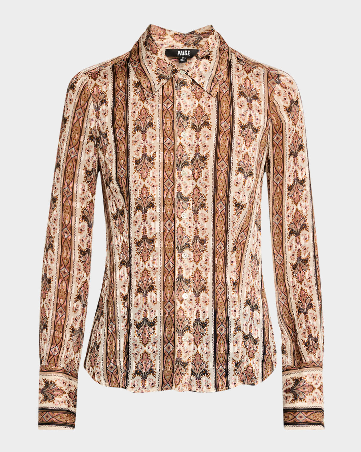 PAIGE "Desano" printed shirt Point collar Long sleeves with button cuffs Classic fit Hem falls to the hip Buttonfront Viscose/silk Imported