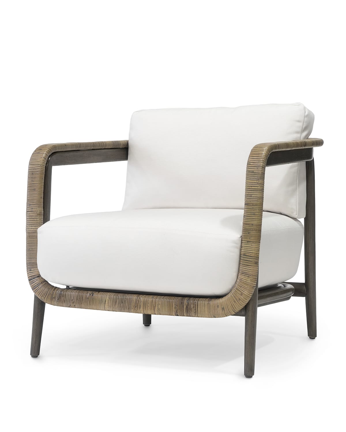Handcrafted lounge chair. Hardwood frame, legs with pole rattan in a gray wash finish accented with wrapped natural rattan peel. Chair comes with loose seat and back cushion. Overall: 32"W x 32"D x 28"T. Seat: 26"W x 23"D x 18"T. Dust with dry cloth/damp cloth when needed. Imported. Boxed weight, approximately 50 lbs.
