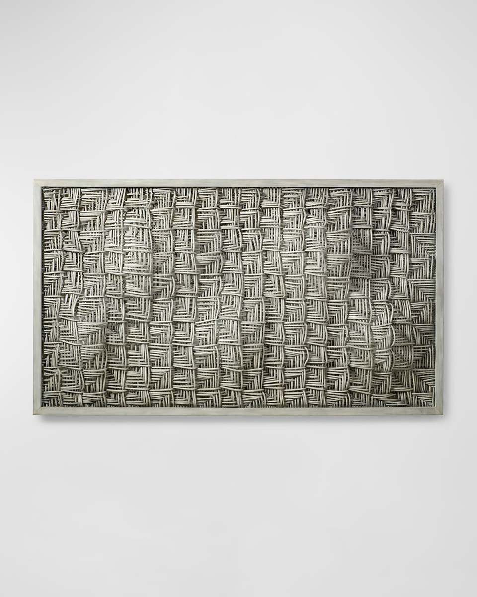 Wall décor is handcrafted of squared core rattan that is woven and set in a whitegrey finished hardwood frame. Hangs both vertically and horizontally. Approx. 84"W x 6.8"D x 48"T Sold individually. Includes hanging hardware Hanging method: metal cleats Spot clean Imported Weight, 44.0lbs Boxed weight, approximately 66.0lbs