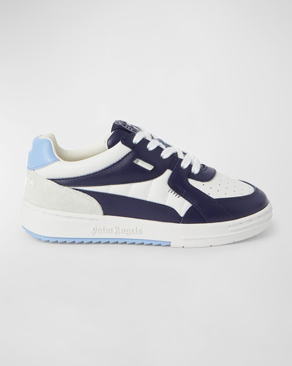 Palm Angels lowtop sneakers in twotone calf leather Flat heel Round toe Laceup vamp Graphic print logo crest on tongue Logo embroidery on back Rubber outsole Imported