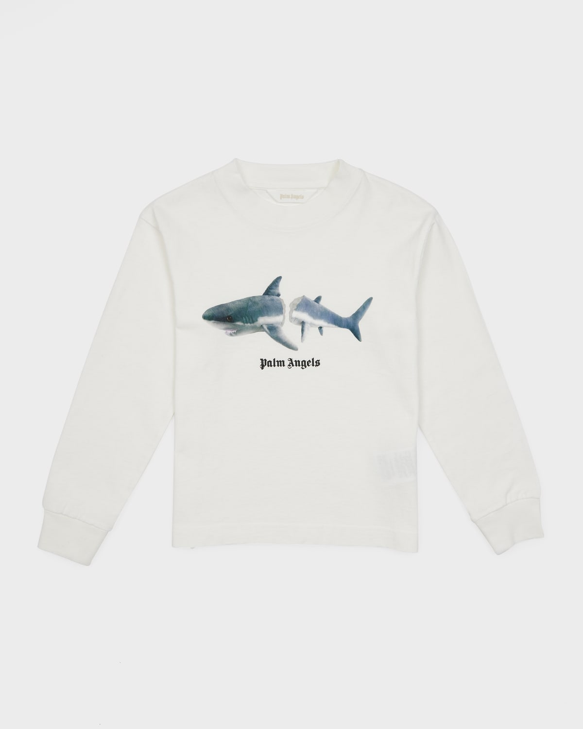 Palm Angels Tshirt with split shark graphic at front Crew neckline Long sleeves Banded cuffs Pullover style Cotton Made in Italy
