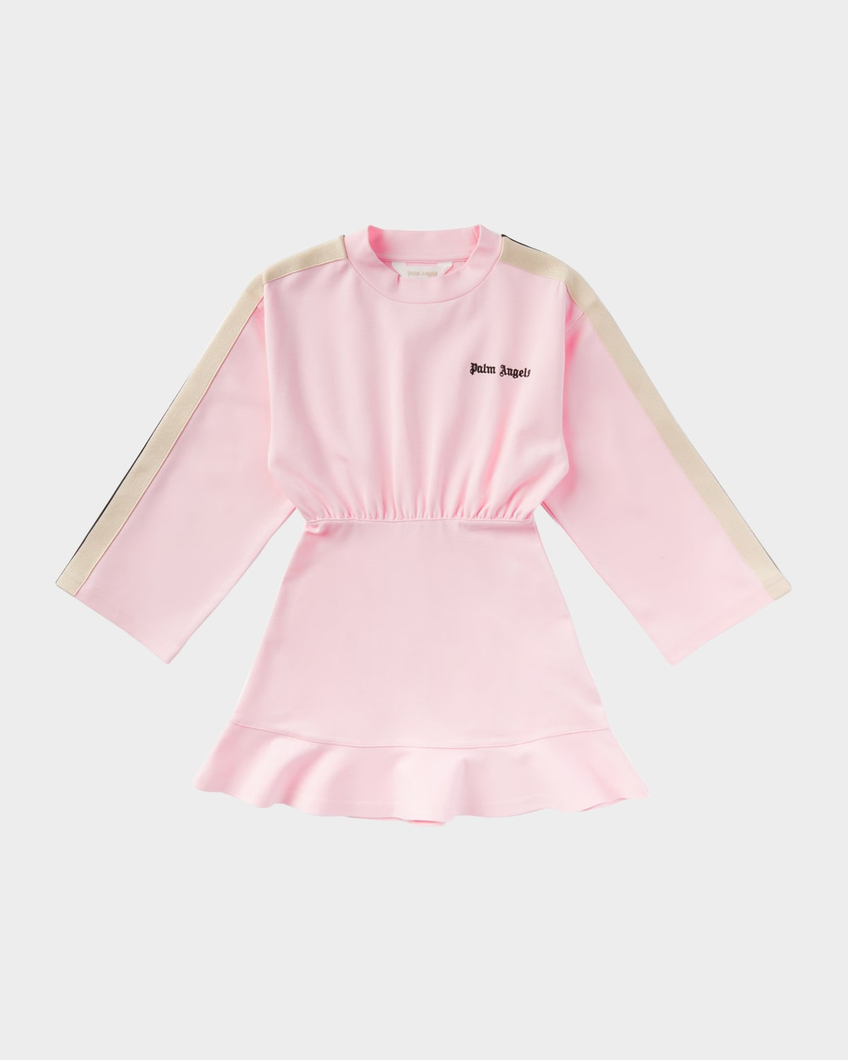 Palm Angels tracksuit sweatshirt dress embroidered with classic logo at chest Crew enckline Long sleeves Elasticized waist Pullover style Hem falls above the knee Aline silhouette Viscose/nylon/polyamide/elastane Made in Portugal