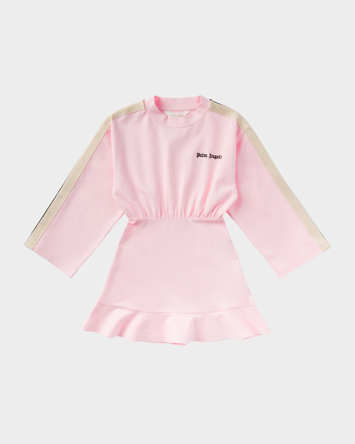 Palm Angels tracksuit sweatshirt dress embroidered with classic logo at chest Crew enckline Long sleeves Elasticized waist Pullover style Hem falls above the knee Aline silhouette Viscose/nylon/polyamide/elastane Made in Portugal