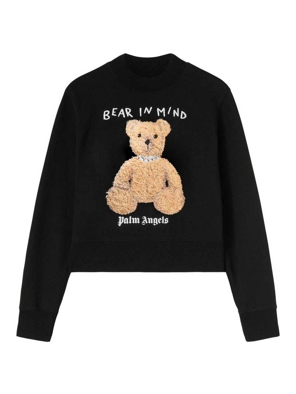 Sweat-shirt Palm Angels avec motif d'ours, col rond noir, application emblématique d'un ours sur le dessus.