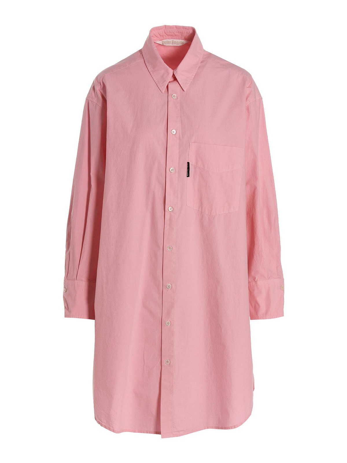 Robe-chemise en coton avec logo imprimé au dos, fermeture à boutons, poche avant, manches longues à revers.