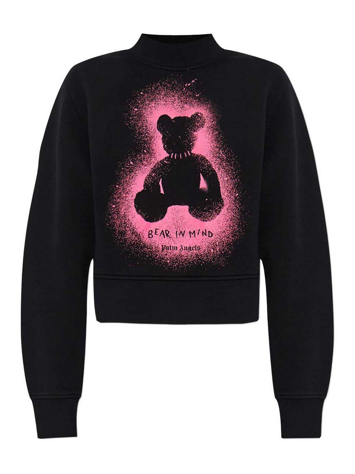 Motif ours en peluche noir effet peinture en aérosol, col haut, manches longues, ourlet court