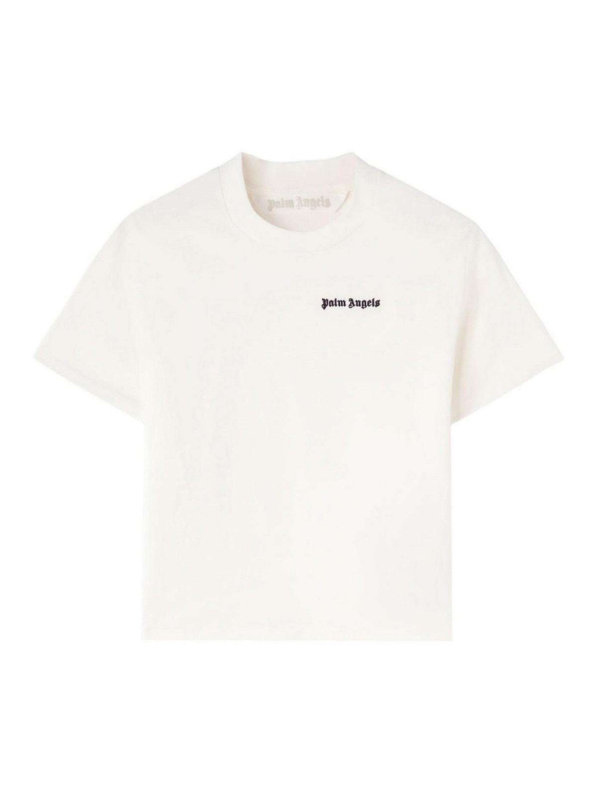 Logo blanc/noir à col rond brodé sur la poitrine, manches courtes, ourlet droit, court