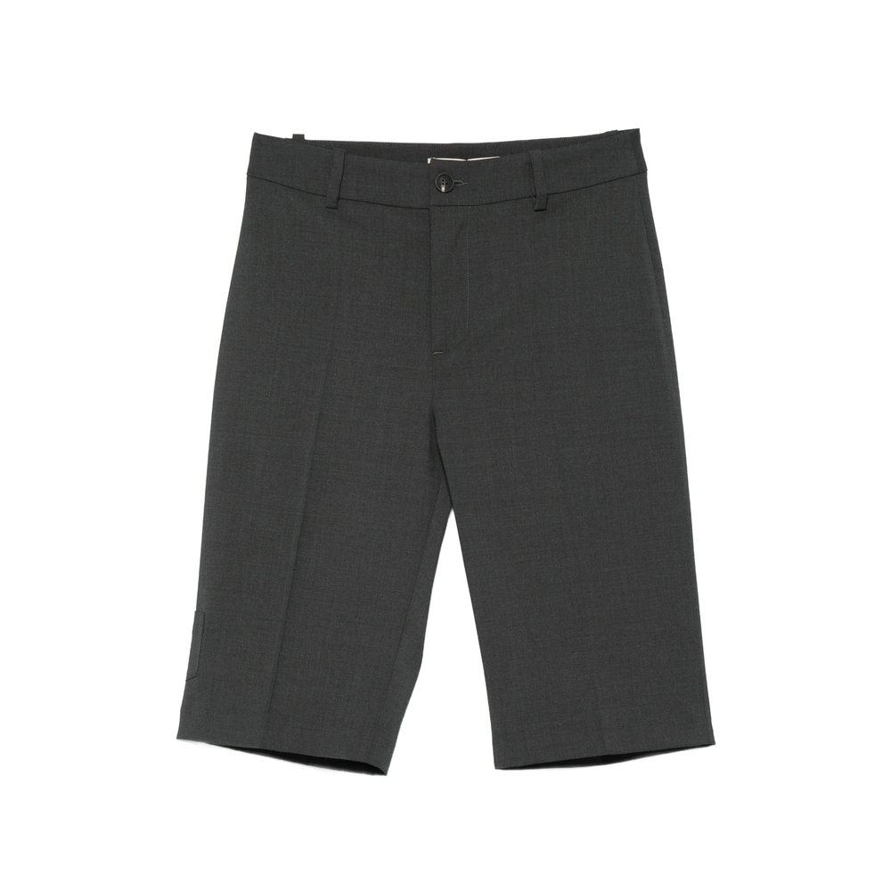 charcoal grey tailored design belt loops front button and zip fastening pressed crease tonal stitching