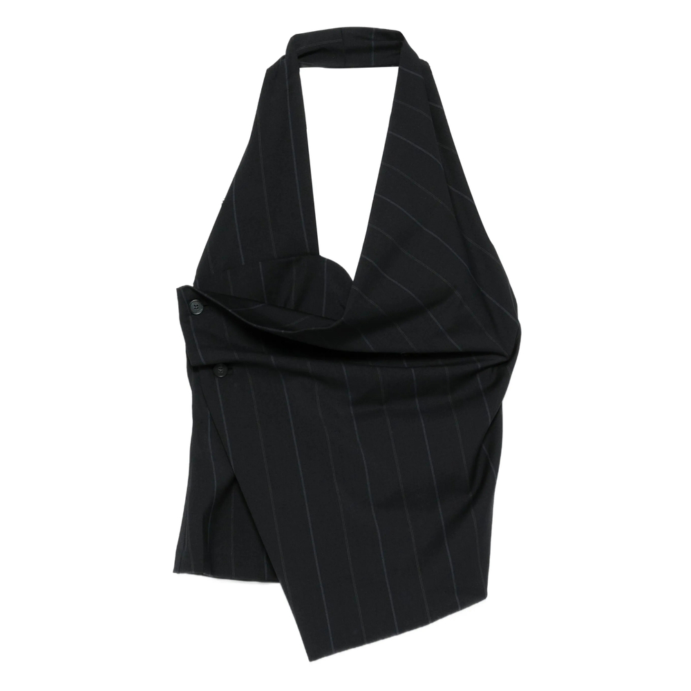 blue pinstripe pattern halterneck button fastening draped detail sleeveless