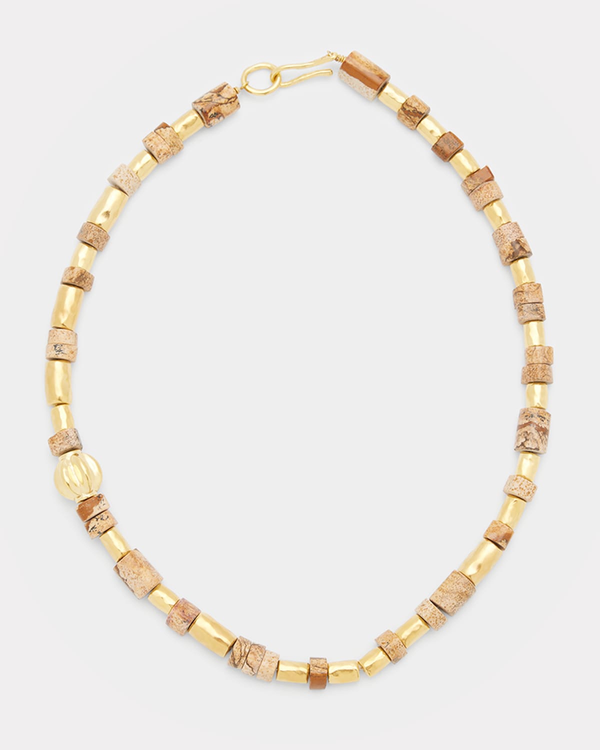 Pamela Love necklace Approx. 20 inches Goldtone brass Jasper stations Hook clasp Imported