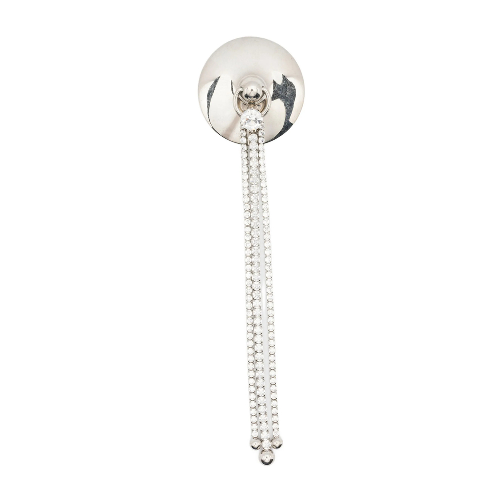 silver-tone circular design drop design crystal embellishment bar-pin fastening