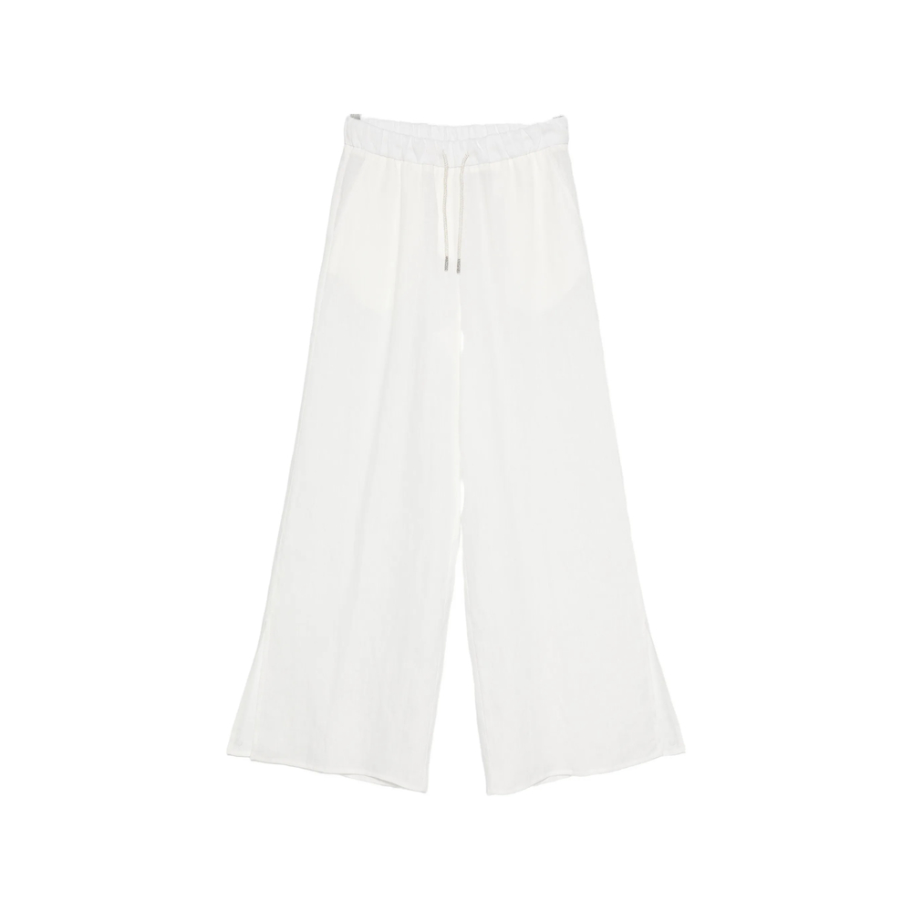 white slub texture wide leg elasticated drawstring waist two side inset pockets loose fit