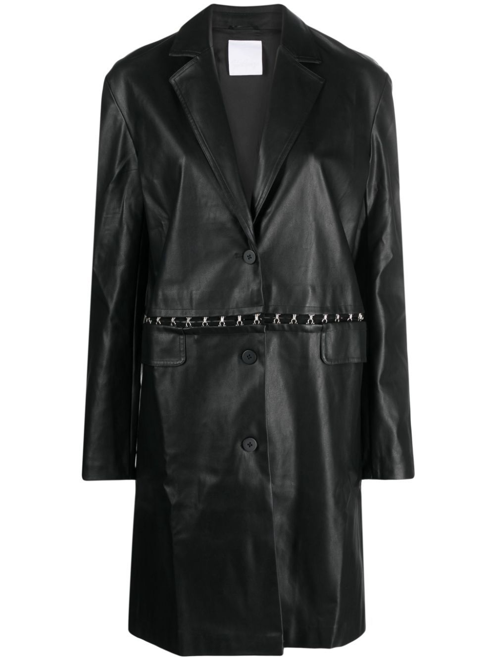 black notched lapels front button fastening hook and eye fastening long sleeves straight hem