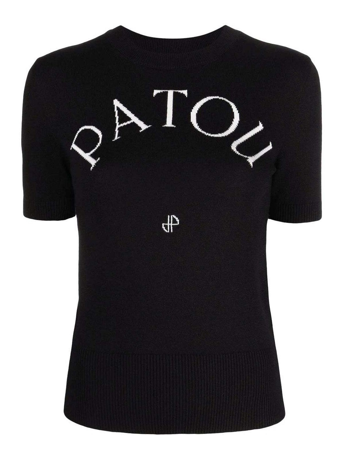 La marque française Patou apporte une touche sophistiquée à ce t-shirt de marque basique en le tricotant dans un mélange doux. Le lettrage du logo emblématique de la marque apparaît dans un tricot intarsia en mélange blanc et noir contrastant. Construction tricotée avec logo en maille intarsia, col rond et manches courtes.
